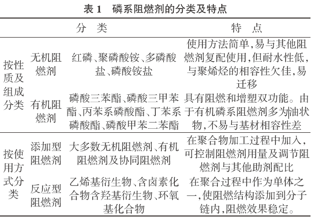 磷系阻燃剂按使用方法可分为反应型阻燃剂和添加型阻燃剂。添加型阻燃剂使用方式便捷并且应用领域广泛,反应型阻燃剂相容性好、阻燃效果稳定,广受人们青睐。